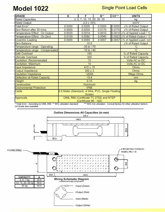 美國(guó)Tedea-Huntleigh 1022-7kg稱重傳感器技術(shù)參數(shù)圖: