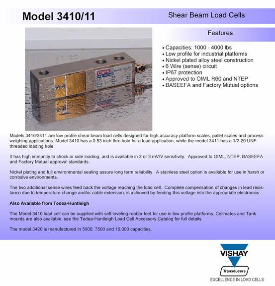 美國Tedea-Huntleigh 3410-1500LB稱重傳感器描述: