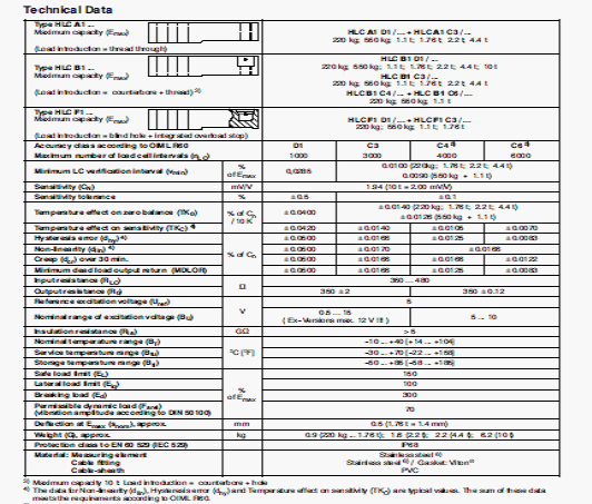 德國(guó)HBM HLCA1C3/220kg稱重傳感器技術(shù)參數(shù)圖: