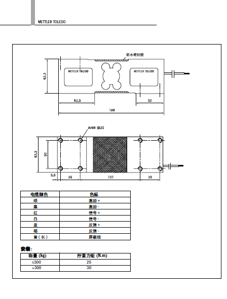 瑞士梅特勒托利多MT1260-500kg稱重傳感器各項技術(shù)指標圖:
