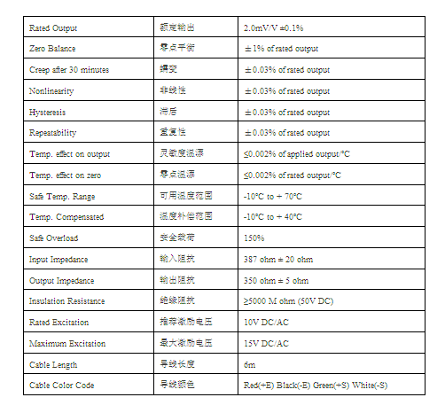美國Transcell BSS-2.5t稱重傳感器主要特性: