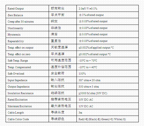 美國(guó)Transcell BSH-150kg稱重傳感器技術(shù)參數(shù)圖: