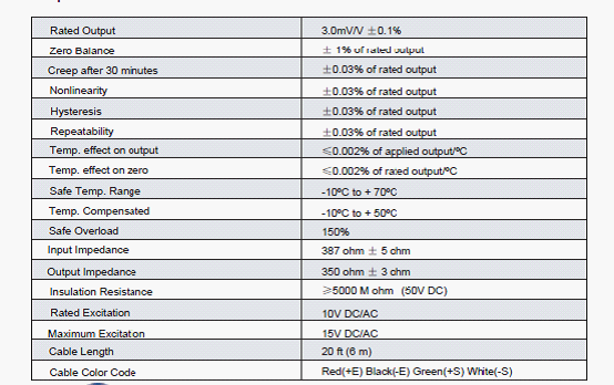 美國(guó)Transcell SBS-3稱重傳感器技術(shù)參數(shù)圖: