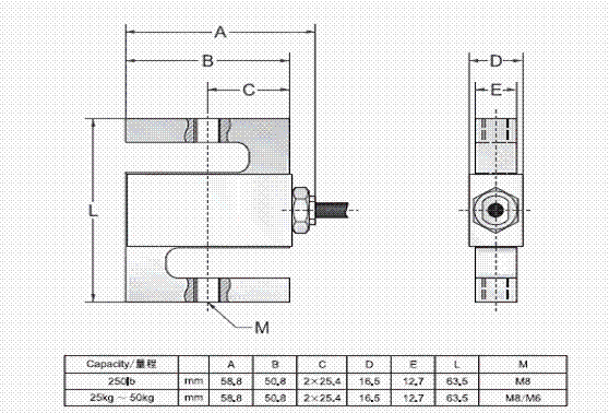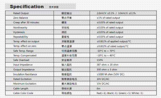 美國Transcell BSA-50kg稱重傳感器技術參數(shù)圖: