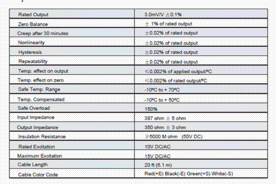 美國Transcell SBSB-2.5T稱重傳感器技術參數(shù)圖: