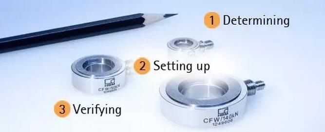 如上說(shuō)述,壓電力墊圈 (CFW) 在安裝后,傳感器需要進(jìn)行標(biāo)定。這意味著,在標(biāo)定后,安裝條件不能改變,尤其是需要加載預(yù)應(yīng)力時(shí)。在標(biāo)定時(shí),需要考慮三個(gè)步驟: