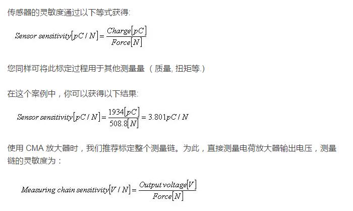 安裝后,需要測(cè)量傳感器靈敏度: 當(dāng)力加載到傳感器上,壓電力傳感器將產(chǎn)生電荷。靈敏度可以通過(guò)以下等式計(jì)算出  (靈敏度 = 電荷/力).
