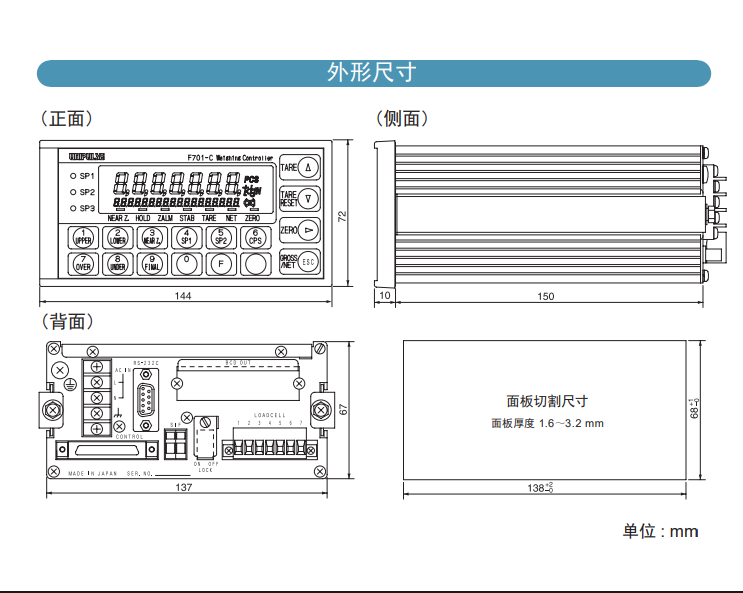 2dK廣州南創(chuàng)電子科技有限公司日本尤尼帕斯稱(chēng)重儀表F701技術(shù)參數(shù):