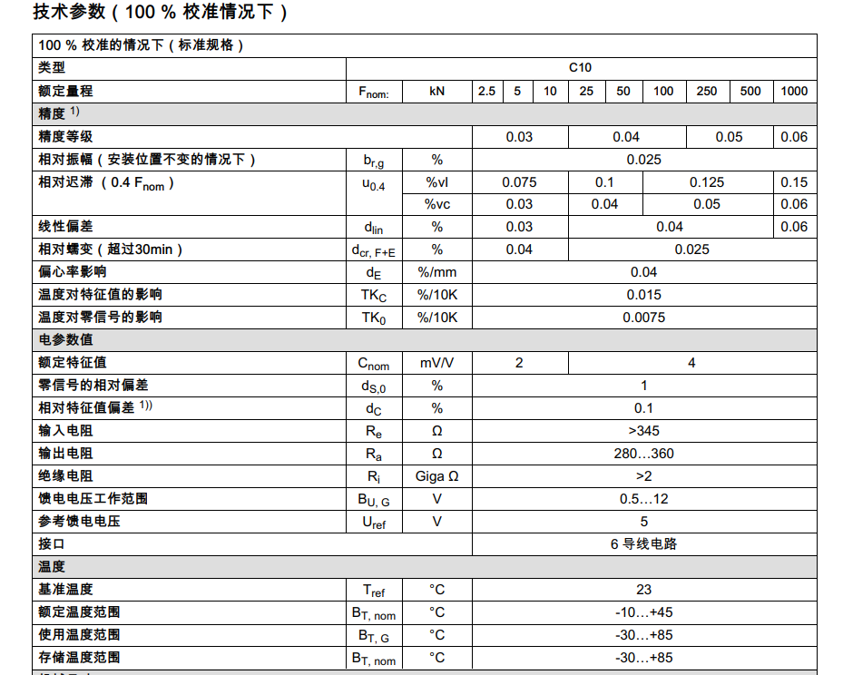 Scr廣州南創(chuàng)電子科技有限公司德國HBM力傳感器C10/250KN產(chǎn)品技術(shù)參數(shù):Scr廣州南創(chuàng)電子科技有限公司