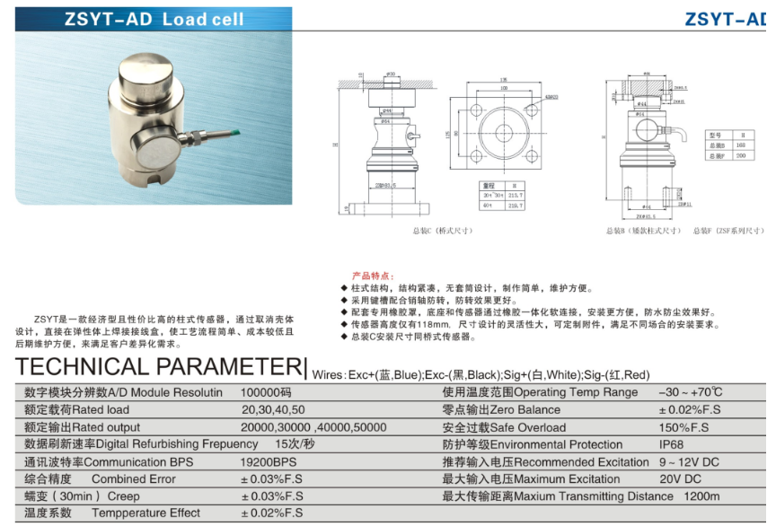 sCR廣州南創(chuàng)電子科技有限公司產(chǎn)品系列:ZSYT-AD型稱重傳感器