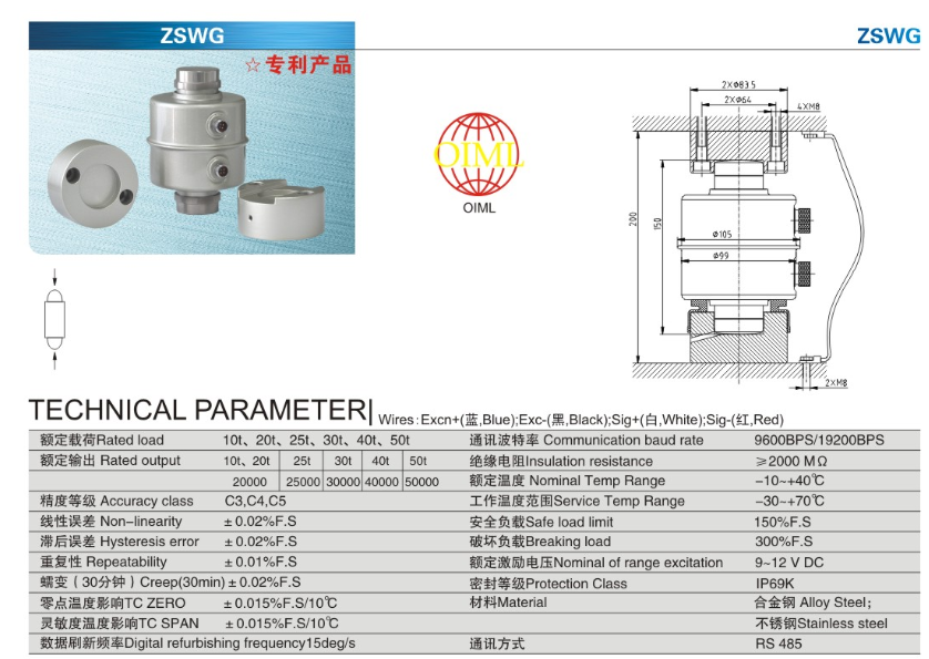 柯力 ZSW-D型FB-40t稱重傳感器型號類別技術(shù)參數(shù)選型安裝等資料信息,如果有關(guān)