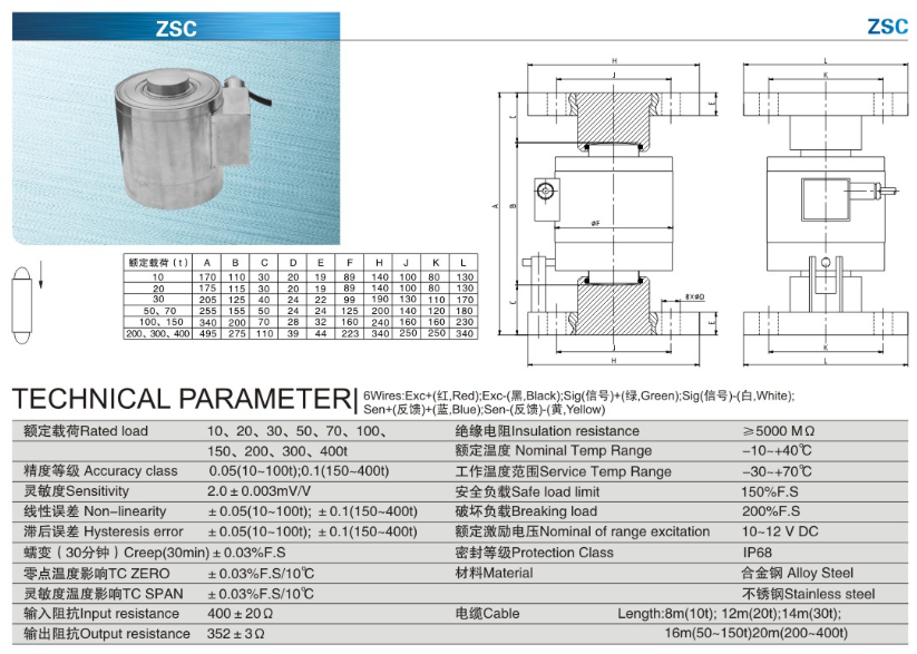 柯力 ZSC-10t稱重傳感器型號類別技術參數(shù)選型安裝等資料信息,如果有關