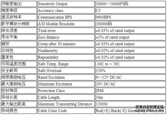 美國柯力ZSNC-A-20t稱重傳感器主要參數(shù):