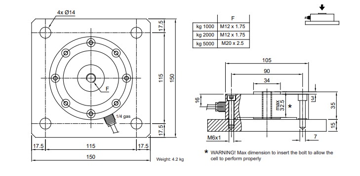 額定負(fù)載(E max):1000、 2000、5000 kg