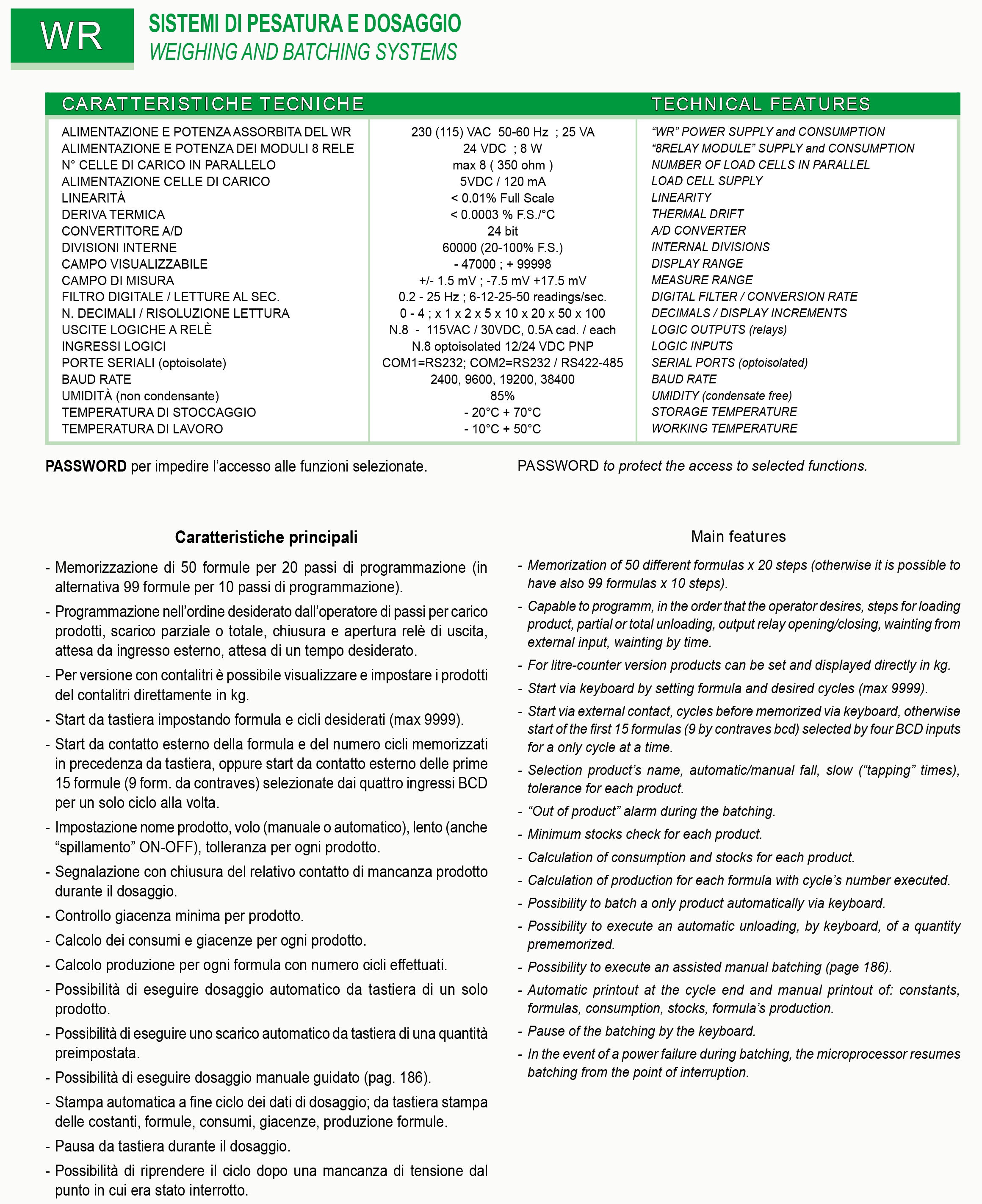 Calcolo dei consumi e giacenze per ogni prodotto; pesando i silos delle materie prime tramite dei trasmettitori di peso e relative celle di carico è possibile trasmettere al WR il reale contenuto della quantità (giacenze) presente nei sili.
