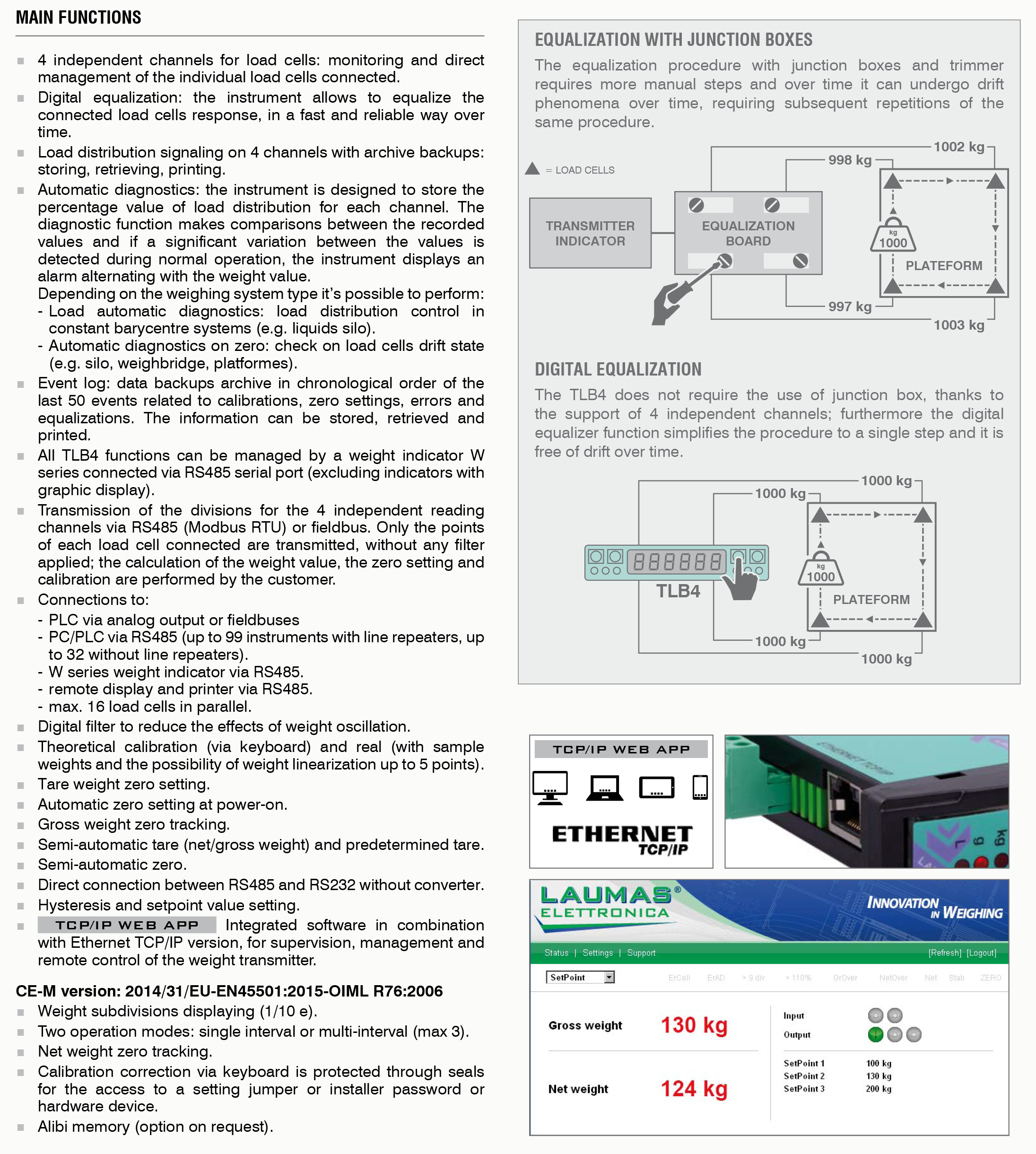 TLB4系列即使使用模擬稱重傳感器,也具有先進(jìn)數(shù)字稱重系統(tǒng)的優(yōu)點(diǎn)和性能。