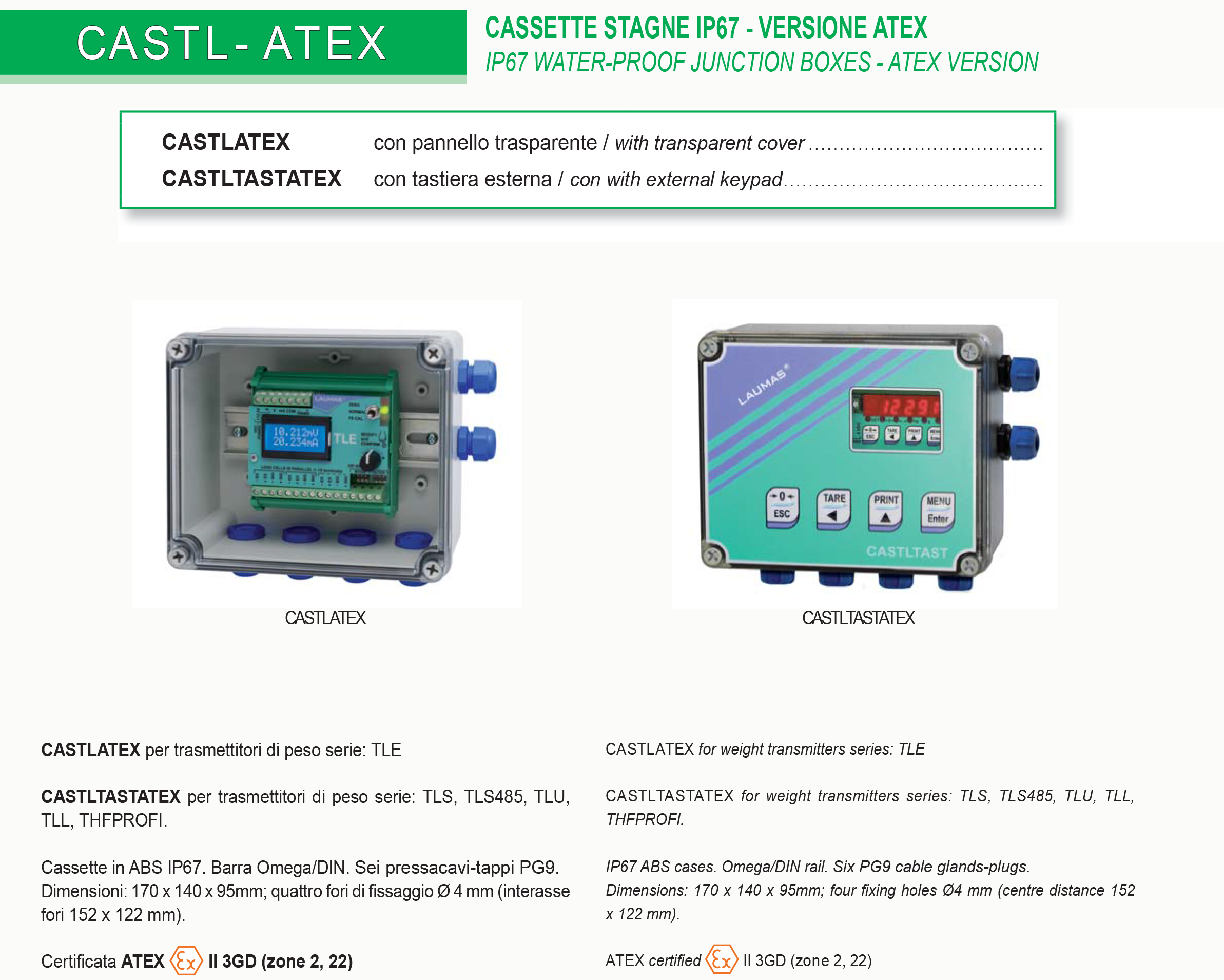 產品名稱:CASTLATEX重量變送器 CASTLATEX稱重變送器 意大利laumas