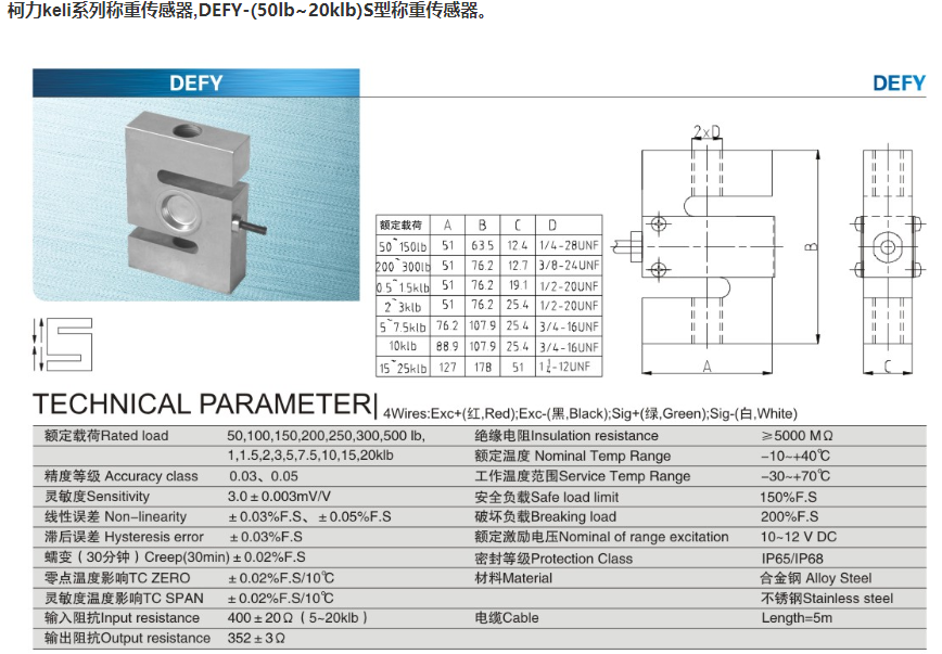 柯力 DEFY-50lb稱重傳感器型號(hào)類別技術(shù)參數(shù)選型安裝等資料信息,如果有關(guān)