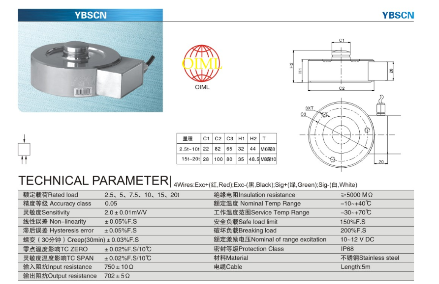 AuM廣州南創(chuàng)電子科技有限公司寧波柯力YBSCN-2.5t稱重傳感器特點(diǎn):AuM廣州南創(chuàng)電子科技有限公司YBSCN傳感器量程:2.5t/5t/10t/15t/20t