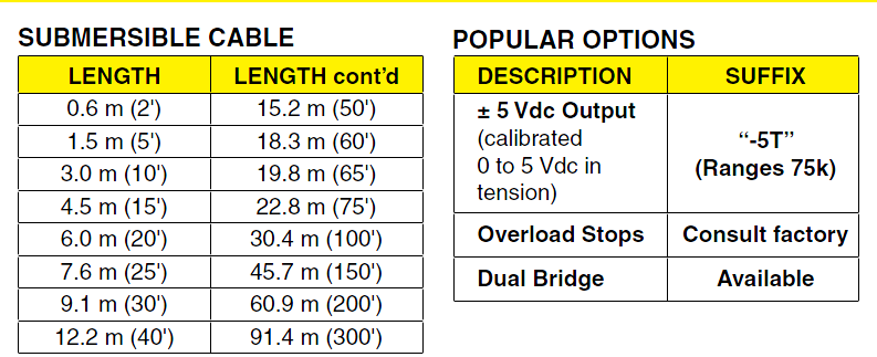輸出范圍≤25 lb:2 mV / V±1%