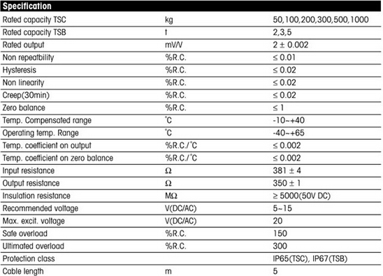 梅特勒托利多TSB系列稱重傳感器所有量程如下:213廣州南創(chuàng)電子科技有限公司