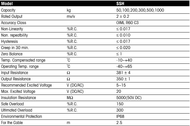 梅特勒托利多SSH系列稱重傳感器所有量程如下:uSL廣州南創(chuàng)電子科技有限公司