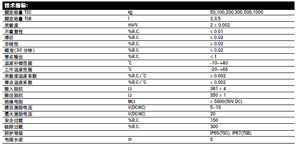 梅特勒托利多TSC系列稱重傳感器所有量程如下:Plu廣州南創(chuàng)電子科技有限公司