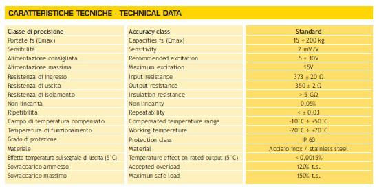 意大利N.B.C Mod EC稱重傳感器技術參數(shù):