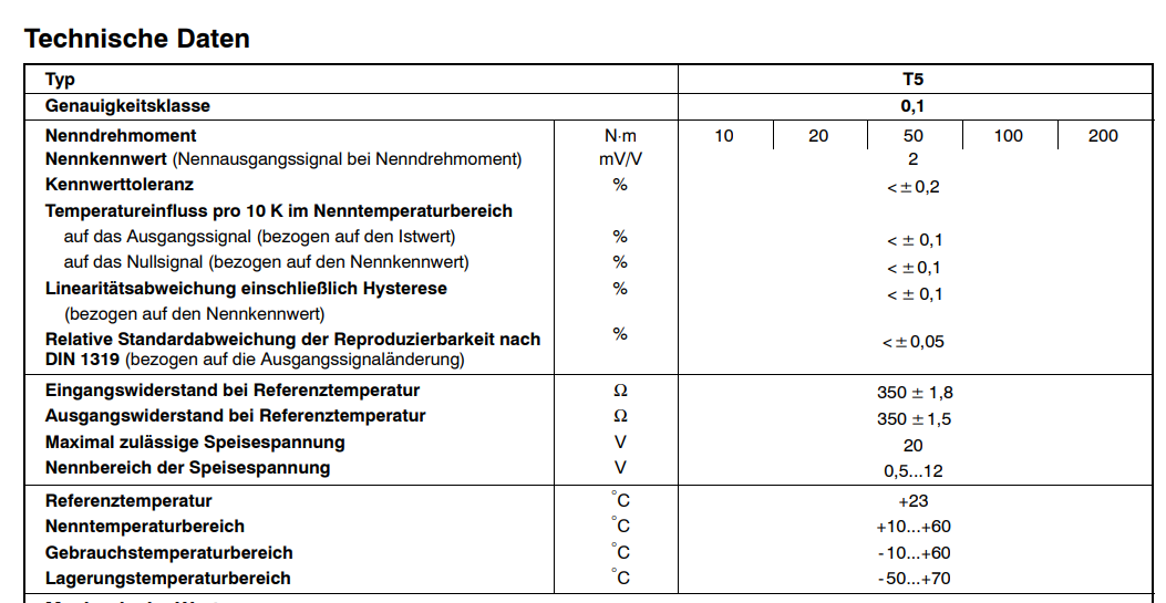 德國HBM T5扭矩傳感器技術(shù)參數(shù):