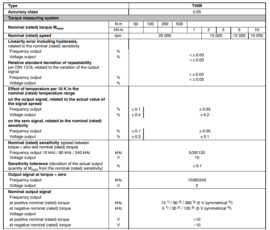 德國HBM T40扭矩傳感器技術(shù)參數(shù):