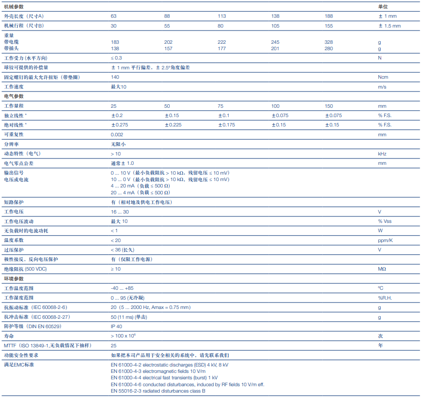 aw2廣州南創(chuàng)電子科技有限公司特點(diǎn): 絕對(duì)位置傳感器,運(yùn)用的是感應(yīng)測(cè)量原理,帶有自由位置標(biāo)記的非接觸式位置檢測(cè),測(cè)量范圍:1000mm, IP67 ,溫度范圍:-40℃-85℃