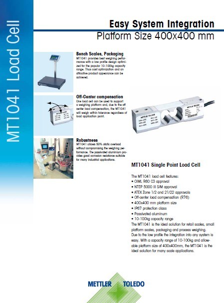 瑞士METTLER TOLEDO MT1041-30稱重傳感器產(chǎn)品資料圖: