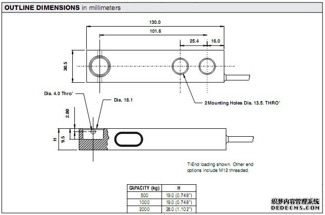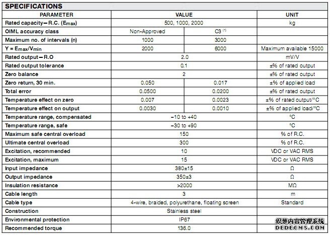 美國Tedea 3520稱重傳感器量程:3520-500kg、3520-1000kg、3520-2000kg。