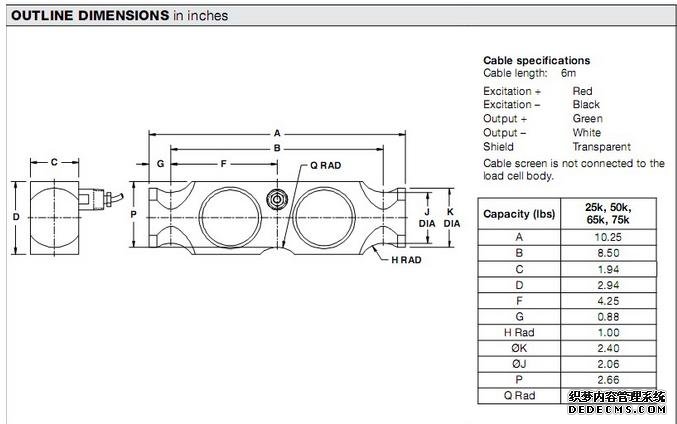 84158: Load Cell, DEB 9323-B10-75k 75000lb 30ft RTI 3mv/v 700 Ohm WW NTEP IIIL 10 M