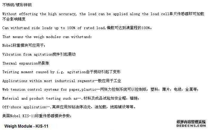 美國Vishay Nobel稱重模塊特點:Ud1廣州南創(chuàng)電子科技有限公司