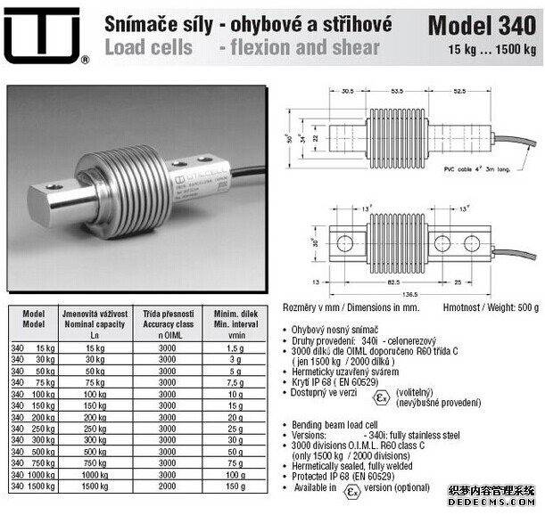 y4D廣州南創(chuàng)電子科技有限公司西班牙尤梯爾稱重傳感器MOD340-15kg技術(shù)參數(shù):