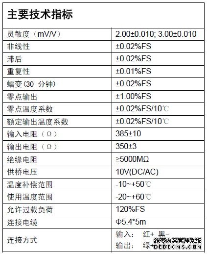 靈敏度(2.00 + / - 0.010 mV / V);3.00 + / - 0.010