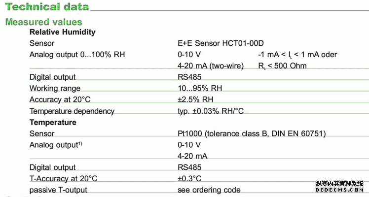 奧地利E+E EE160系列溫濕度變送器技術(shù)參數(shù)圖:5GT廣州南創(chuàng)電子科技有限公司