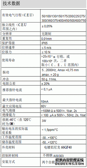 意大利GEFRAN PC系列位移傳感器產品技術參數圖:bnH廣州南創(chuàng)電子科技有限公司
