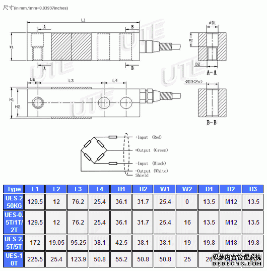 臺(tái)灣UTE UES系列稱重傳感器產(chǎn)品參數(shù)圖:vyH廣州南創(chuàng)電子科技有限公司