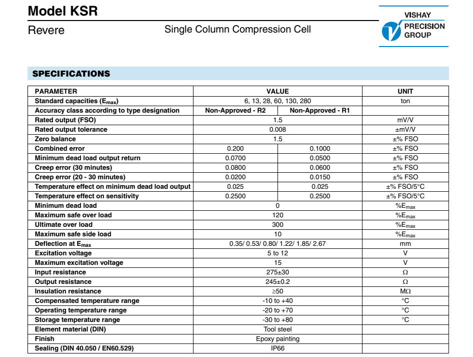 vishay Revere KSR-130t稱重傳感器型號(hào)類別技術(shù)參數(shù)選型安裝等資料信息,如果有關(guān)