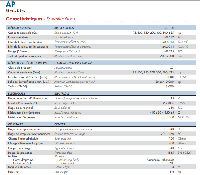 AP-75kg稱重傳感器法國Scaime