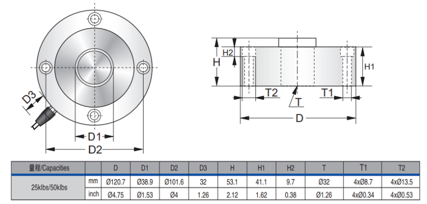 NKS廣州南創(chuàng)電子科技有限公司美國傳力Transcell稱重傳感器PTCH-60T尺寸圖:NKS廣州南創(chuàng)電子科技有限公司