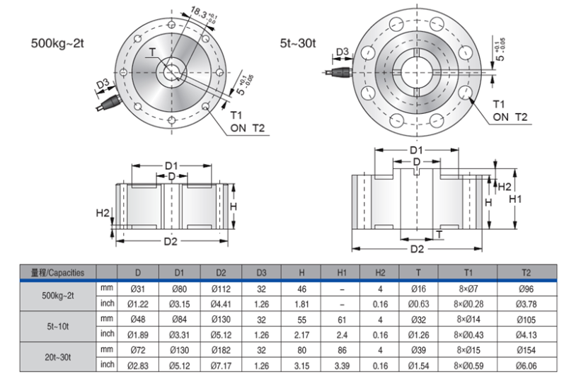 Gl3廣州南創(chuàng)電子科技有限公司美國傳力Transcell稱重傳感器PWCD-5klb尺寸圖:Gl3廣州南創(chuàng)電子科技有限公司