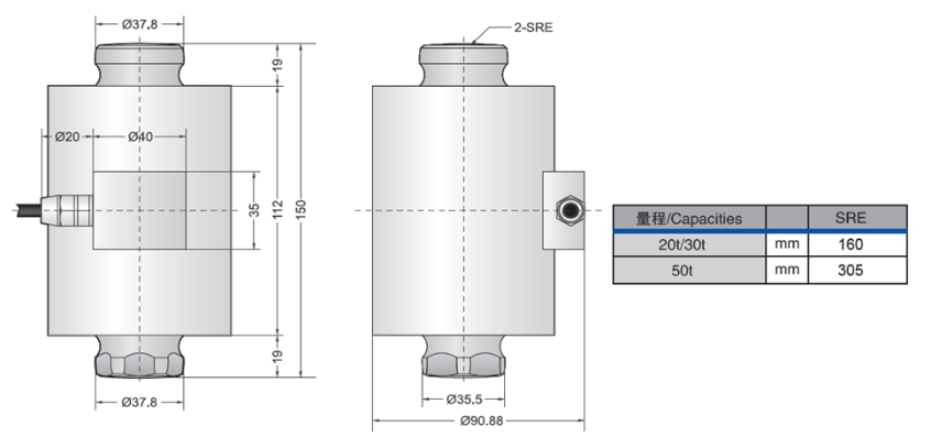 xUJ廣州南創(chuàng)電子科技有限公司美國(guó)傳力CD-5t稱重傳感器產(chǎn)品尺寸圖:xUJ廣州南創(chuàng)電子科技有限公司