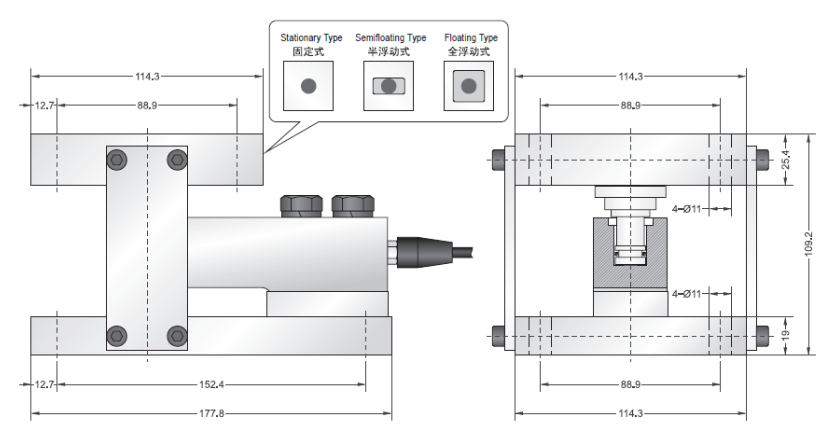 0up廣州南創(chuàng)電子科技有限公司美國傳力Transcell稱重模塊SBTL-LG-0.5t MODULE尺寸圖:0up廣州南創(chuàng)電子科技有限公司