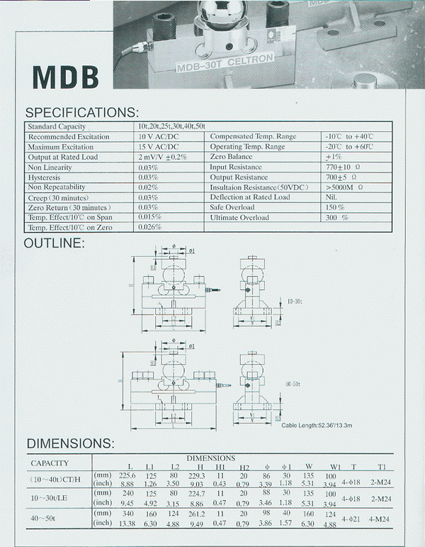 美國世銓celtron MDB-40t稱重傳感器各項(xiàng)技術(shù)指標(biāo):