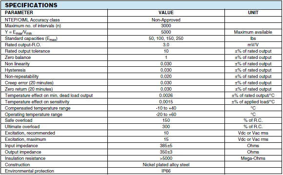 美國世銓Celtron MBB系列稱重傳感器所有量程如下:Klm廣州南創(chuàng)電子科技有限公司