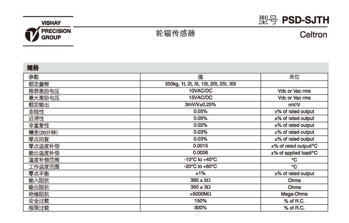 vishay celtron PSD-10tSJTH稱重傳感器型號(hào)類別技術(shù)參數(shù)選型安裝等資料信息,如果有關(guān)
