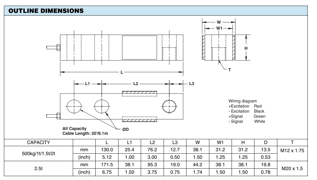 72D廣州南創(chuàng)電子科技有限公司美國vishay celtron SEB-2.5t稱重傳感器特點(diǎn):72D廣州南創(chuàng)電子科技有限公司容量500kg 1t 2.5t 2t 2.5t
